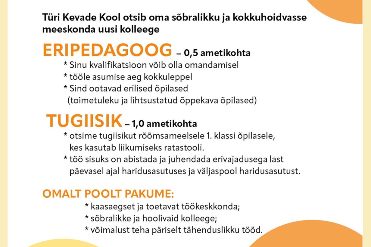 Veebruarikuu Kevade koolis Loomise kuupäev 03.02.2026 Autor @kevadekool Türi Kevade kooli aialinnud on rõõmsad Loomise kuupäev 03.02.2026 Autor @kevadekool Lastevanemate koosolek Loomise kuupäev 30.01.2026 Autor @kevadekool Talvemõnud Kevade kooli lastele Loomise kuupäev 28.01.2026 Autor @kevadekool Vaata rohkem
