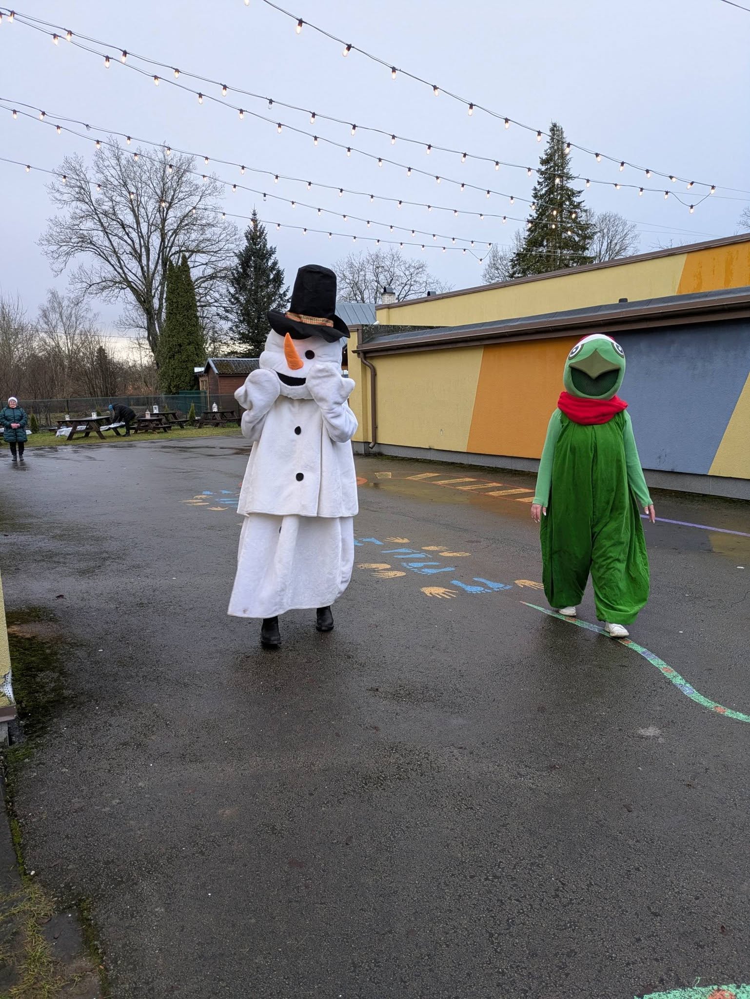 Meid tervitasid rõõmsalt lumememm, tibu ja meisterdamise päkapikk. Otsisime ja värvisime jõuluehteid, kaunistasime piparkooke ning nautisime toredaid jõululaule.