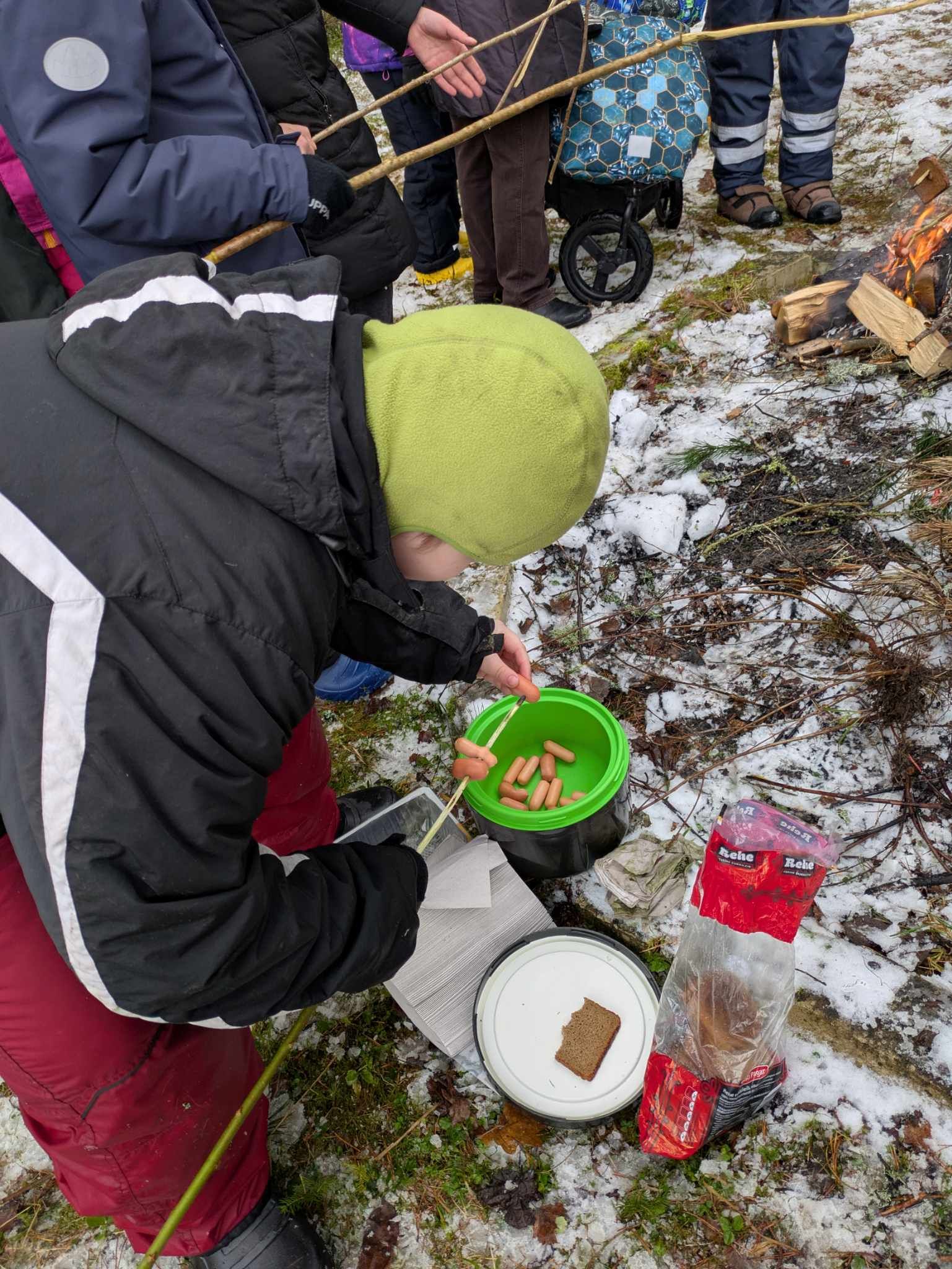 Kui lõke juba praksus, jagati lastele noad ning igaüks valmistas ise grillimiseks sobiva varda. Lõkkel viinerite soojendamine tõi kõigile rõõmu ja matkapäeva mõnusat soojust.