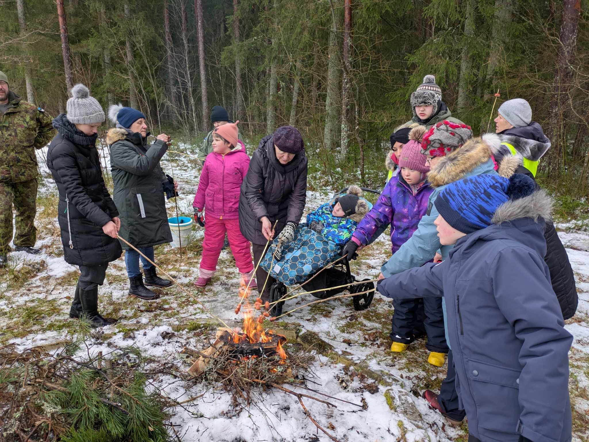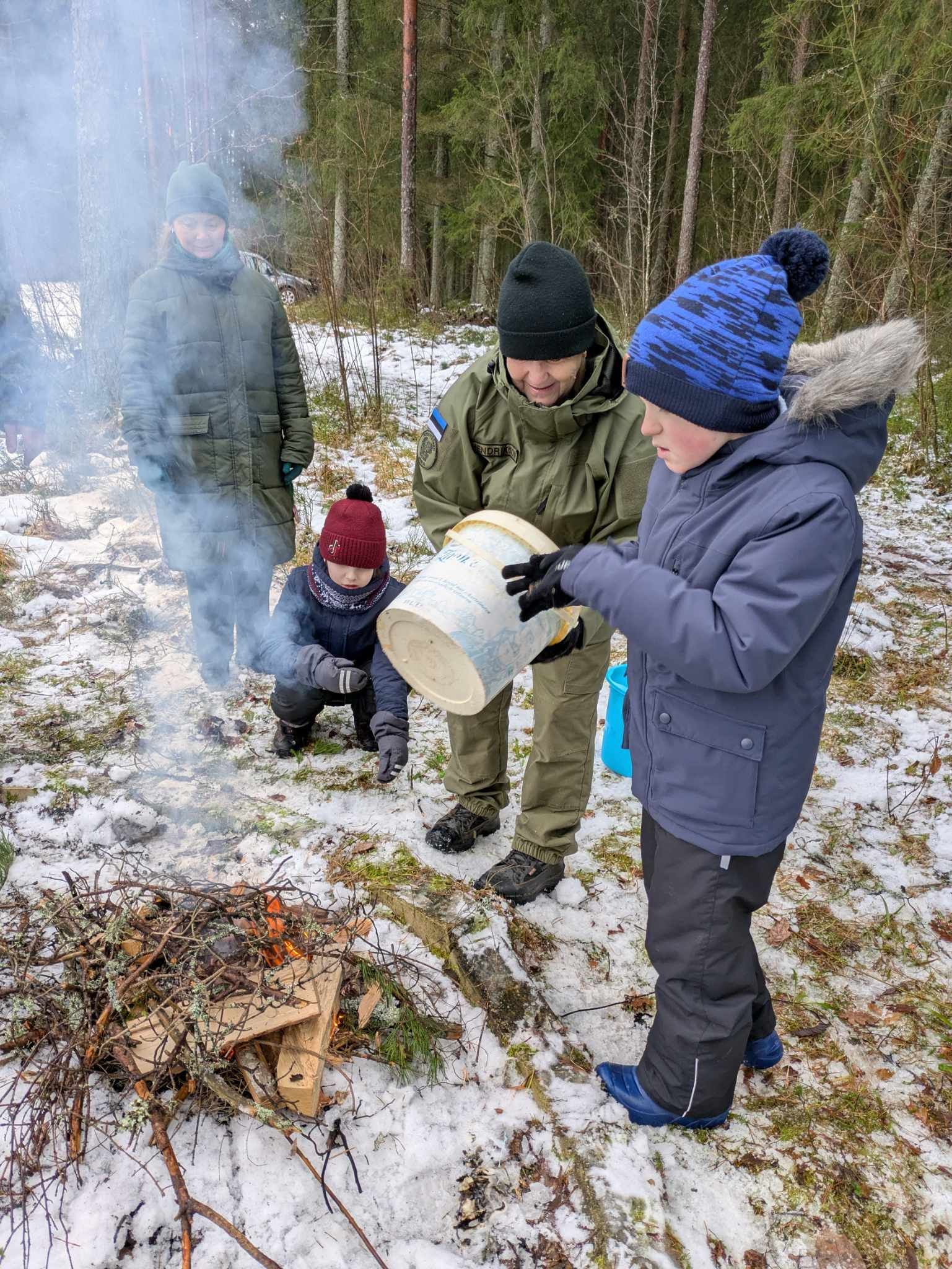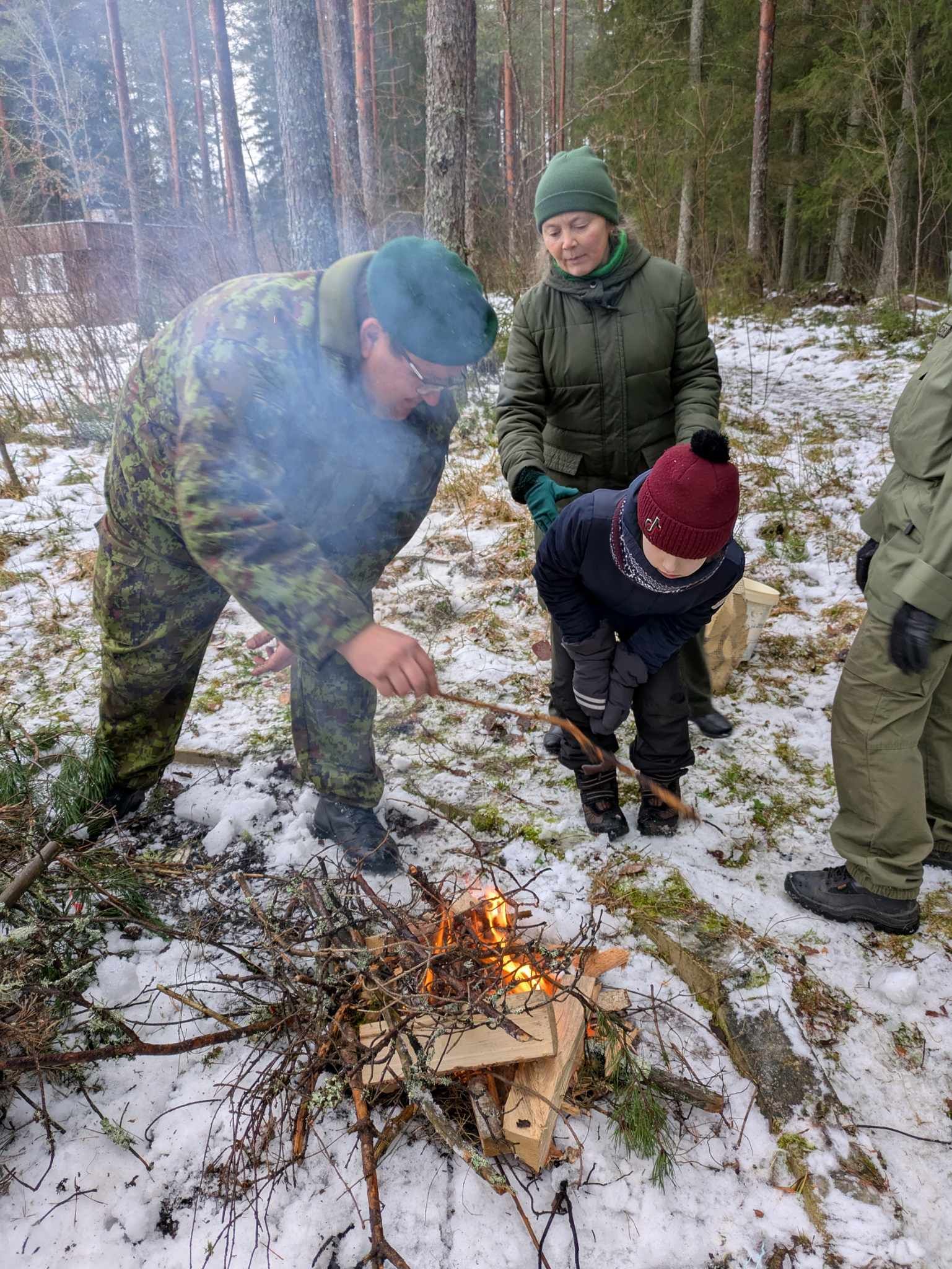 Lapsed said vahva ülesande – koguda metsa alt oksi ja viia need lõkkeplatsile. Seejärel õpetasid juhendajad, kuidas lõket süüdata ning milliseid abivahendeid selleks kasutada. Tulepulkade abil sädemete tekitamine osutus parajaks väljakutseks